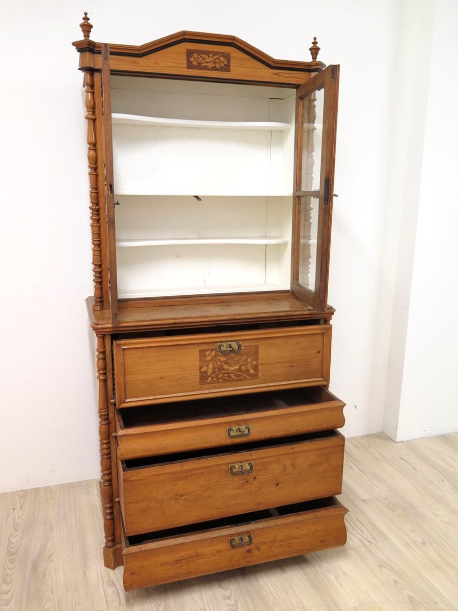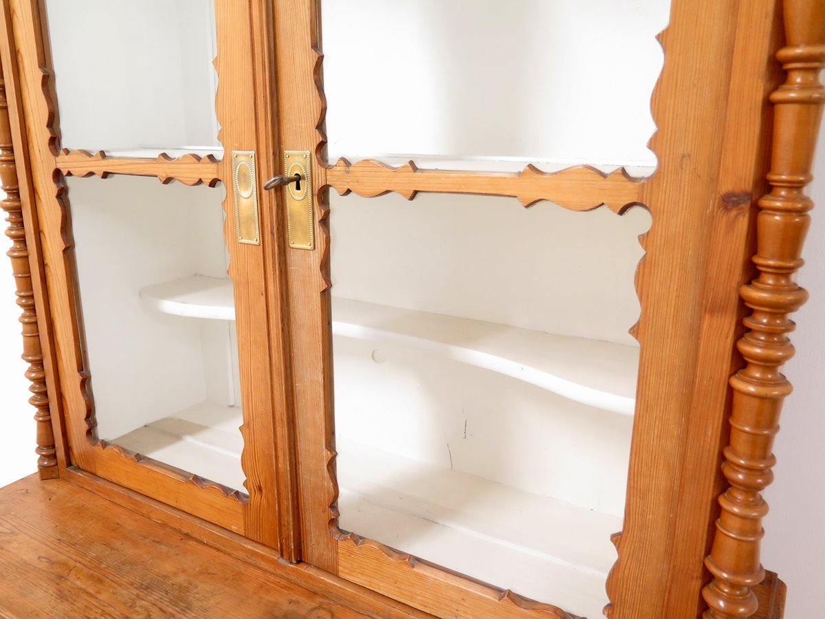 Starožitná kredenc z masivu po odborné renovaci. Nádherný kousek ve velmi zachovalém stavu. Stabilní a pevná konstrukce (2 díly).