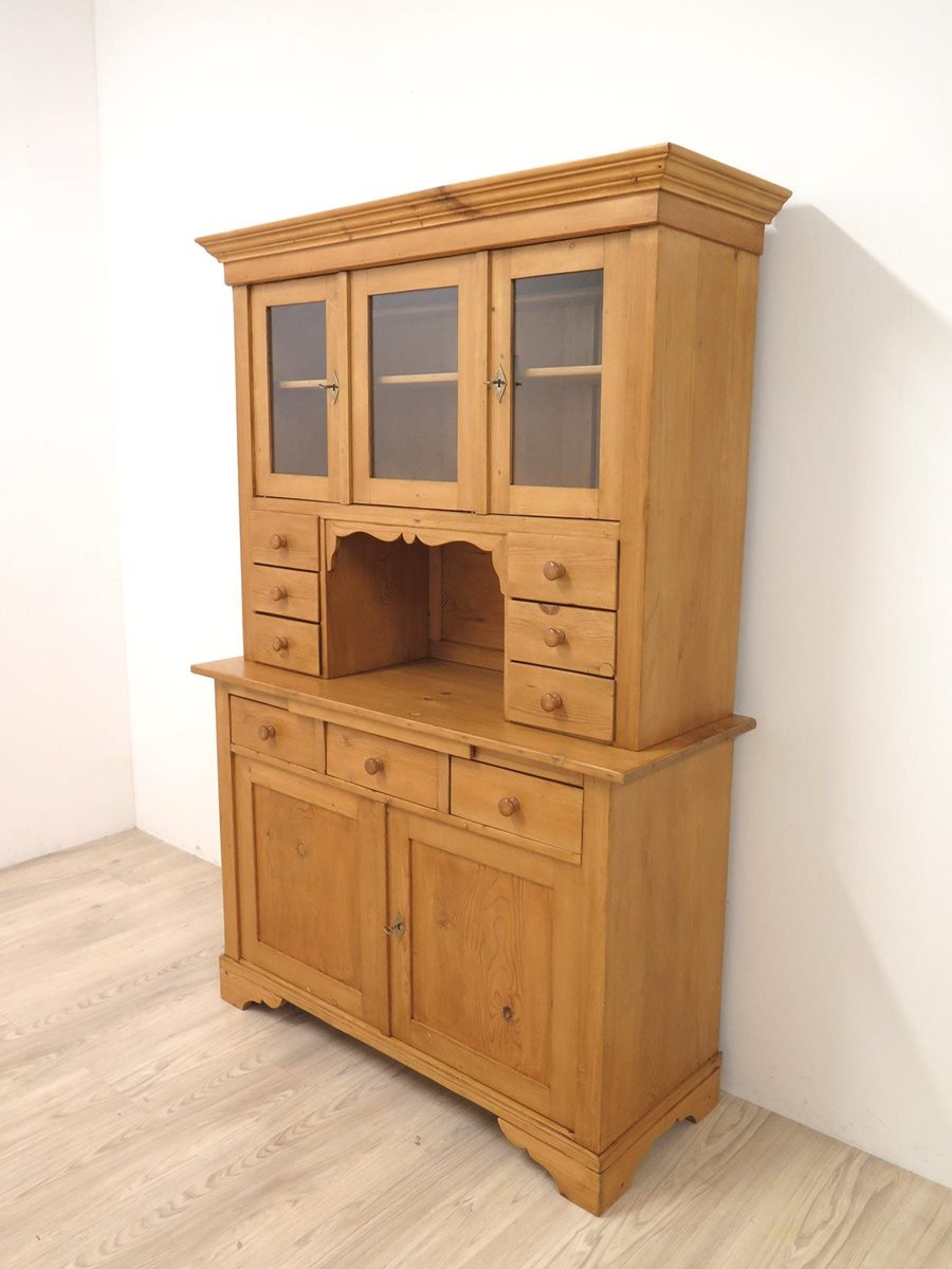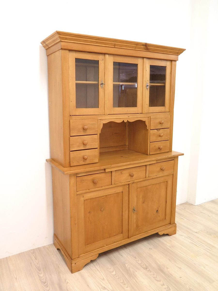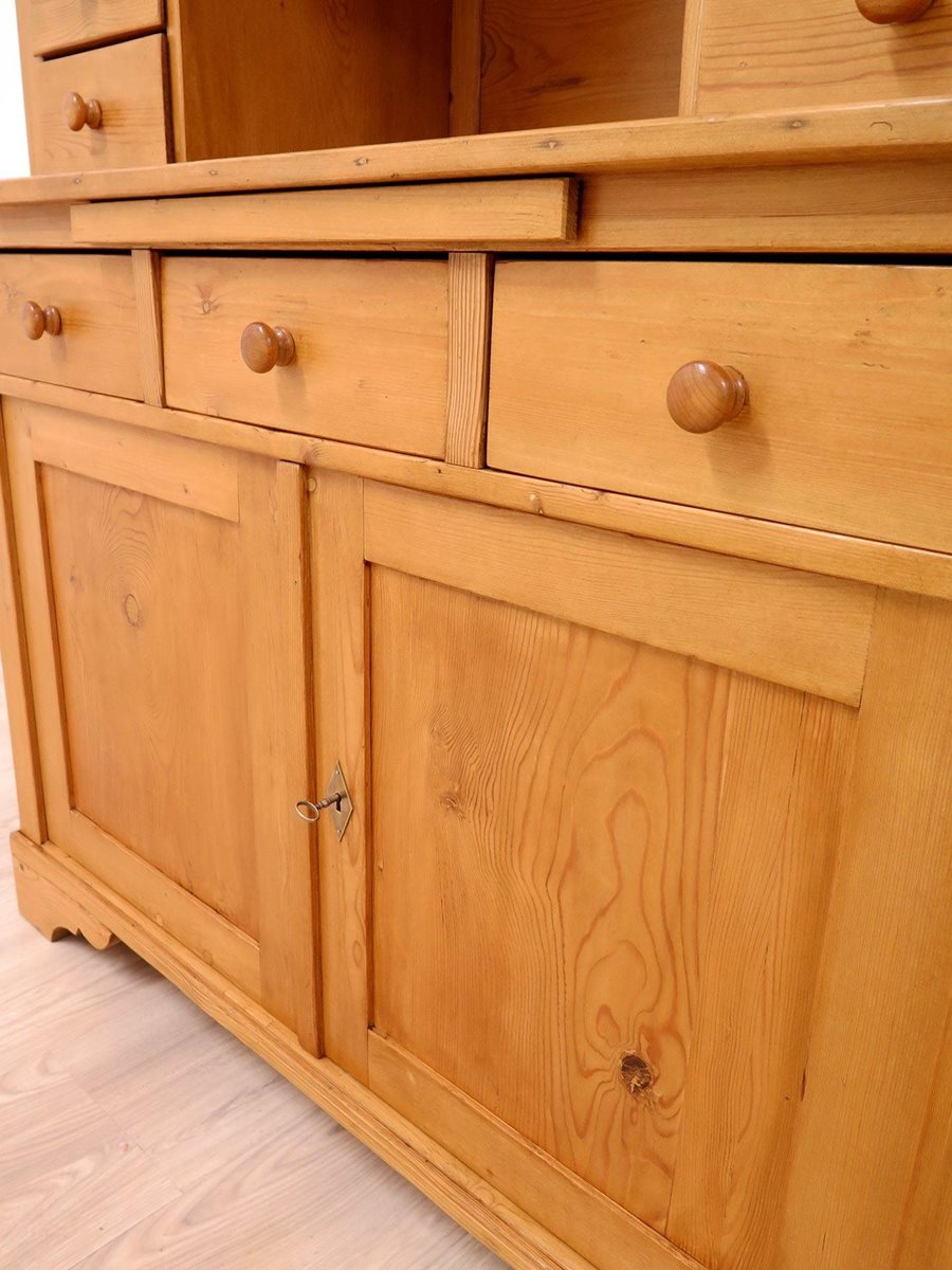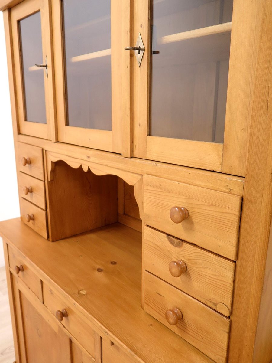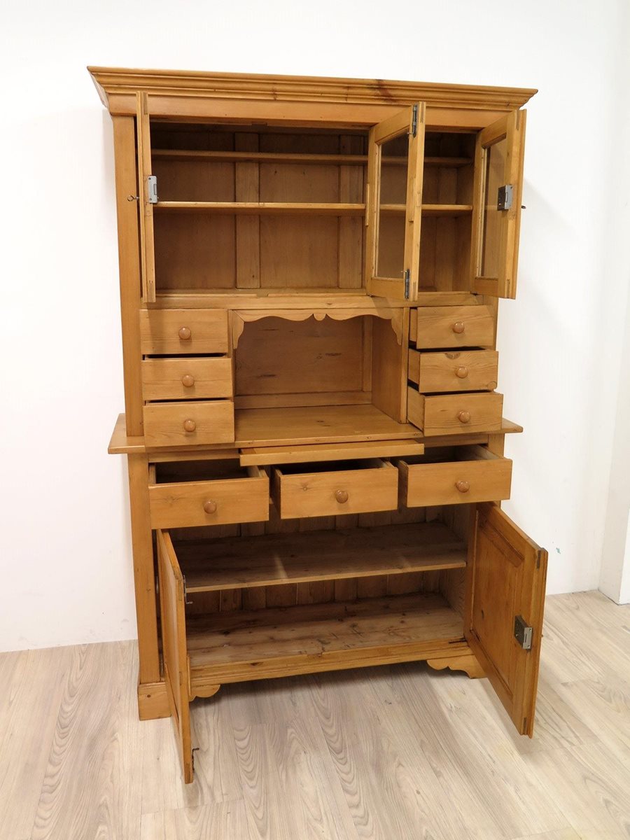 Starožitná kredenc ze smrkového masivu po odborné renovaci. Nádherný kousek ve velmi zachovalém stavu. Stabilní a pevná konstrukce (2 díly).