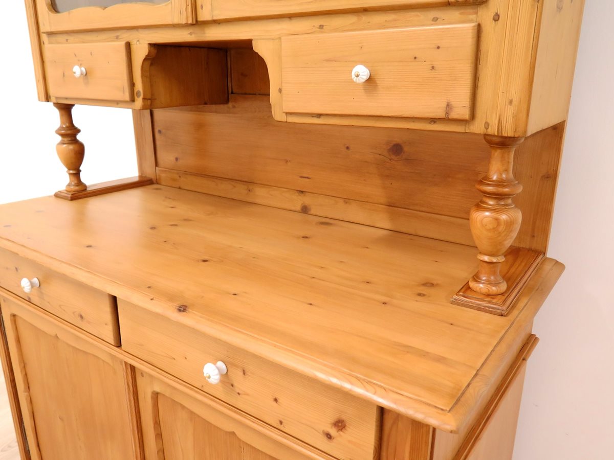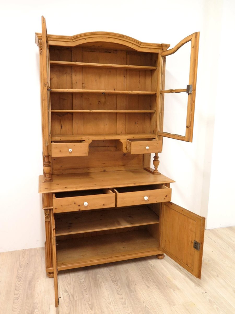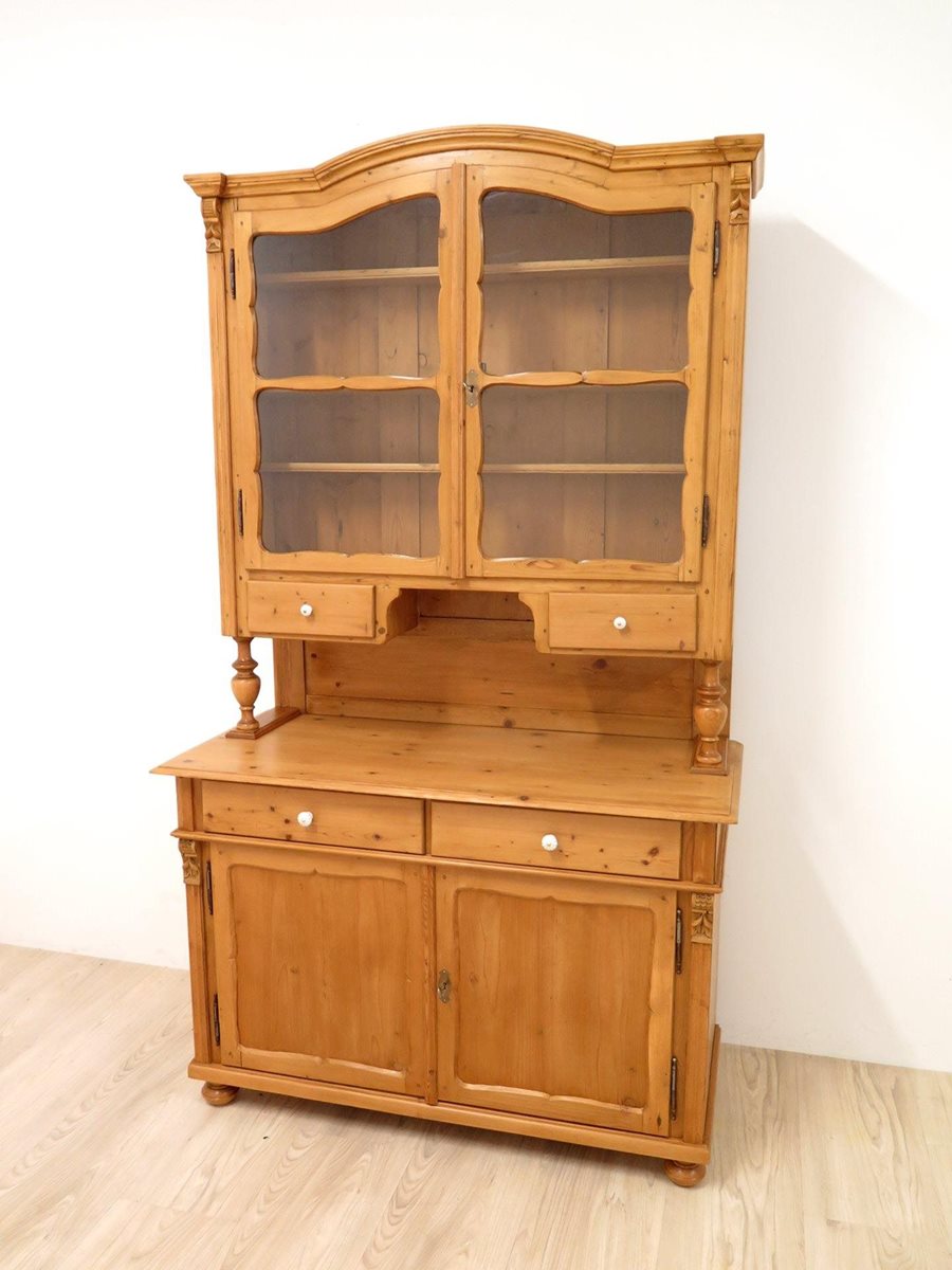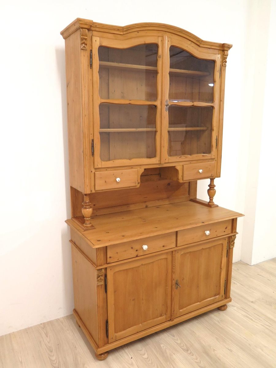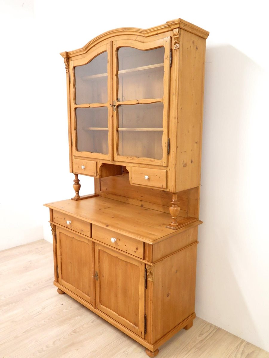 Starožitná kredenc ze smrkového masivu po odborné renovaci. Nádherný kousek ve velmi zachovalém stavu. Stabilní a pevná konstrukce (2 díly).
