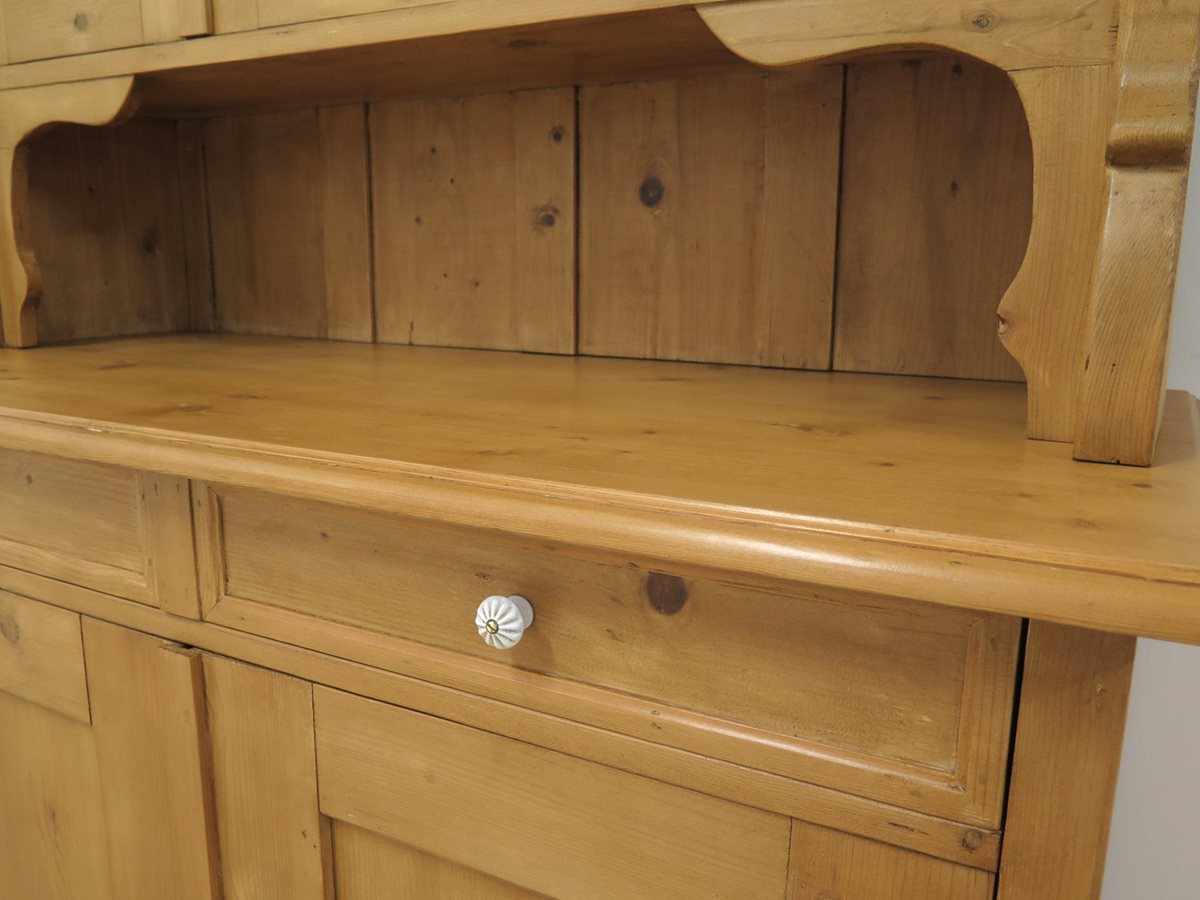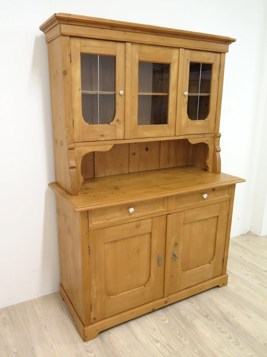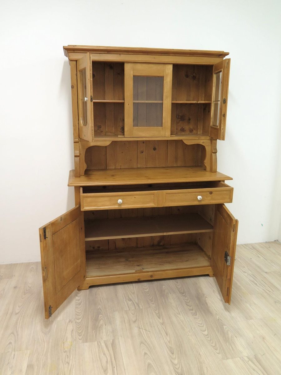 Starožitná kredenc ze smrkového masivu po odborné renovaci. Nádherný kousek ve velmi zachovalém stavu. Stabilní a pevná konstrukce (2 díly).
