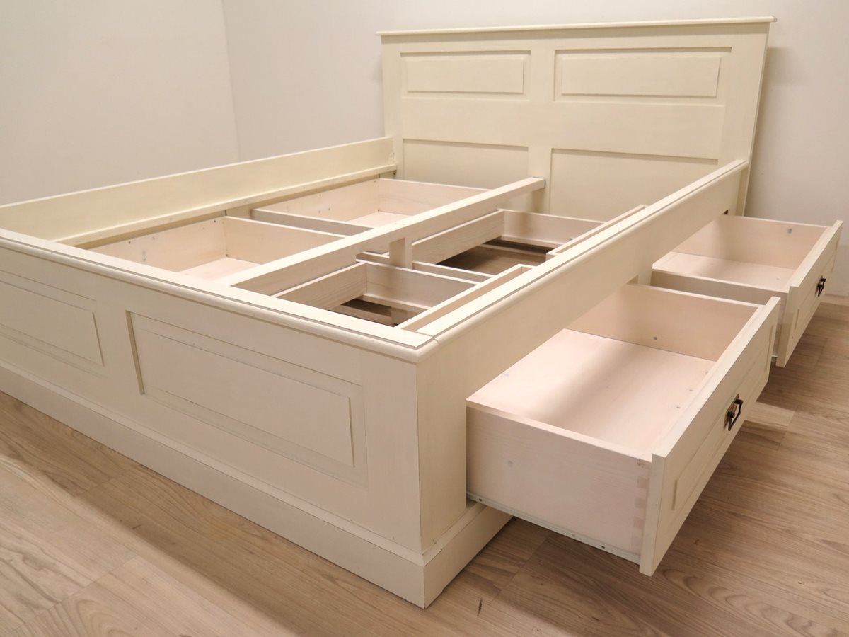 Postel se zásuvkami ze smrkového masivu z kolekce Exclusive.