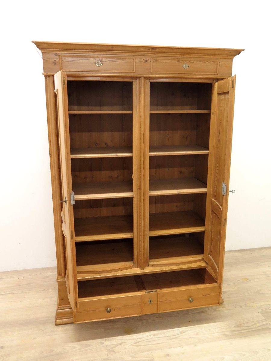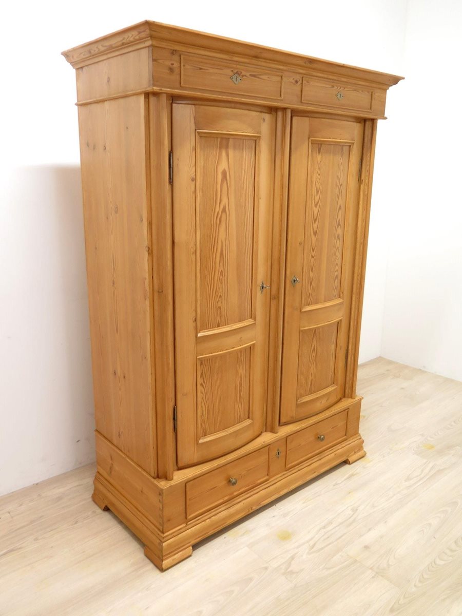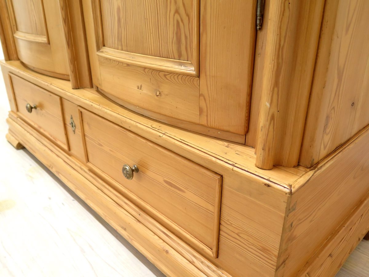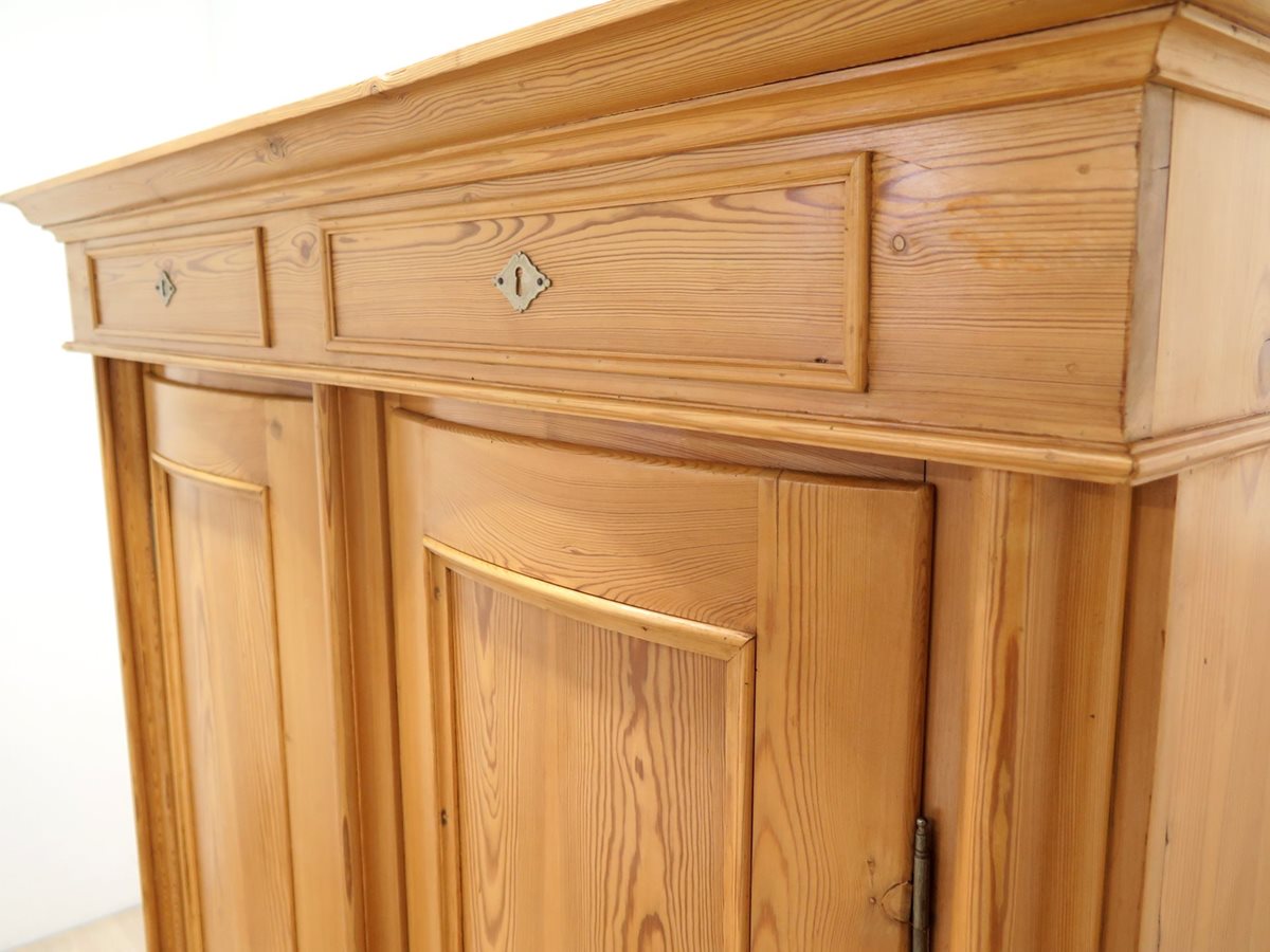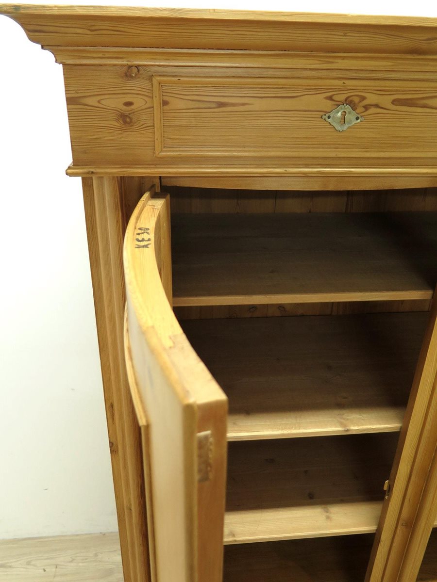 Krásná starožitná šatní skříň ze smrkového masivu po odborné renovaci. Nádherný kousek ve velmi zachovalém stavu. Zajímavé dveře do oblouku. Stabilní a pevná konstrukce. Skříň je rozebíratelná.
