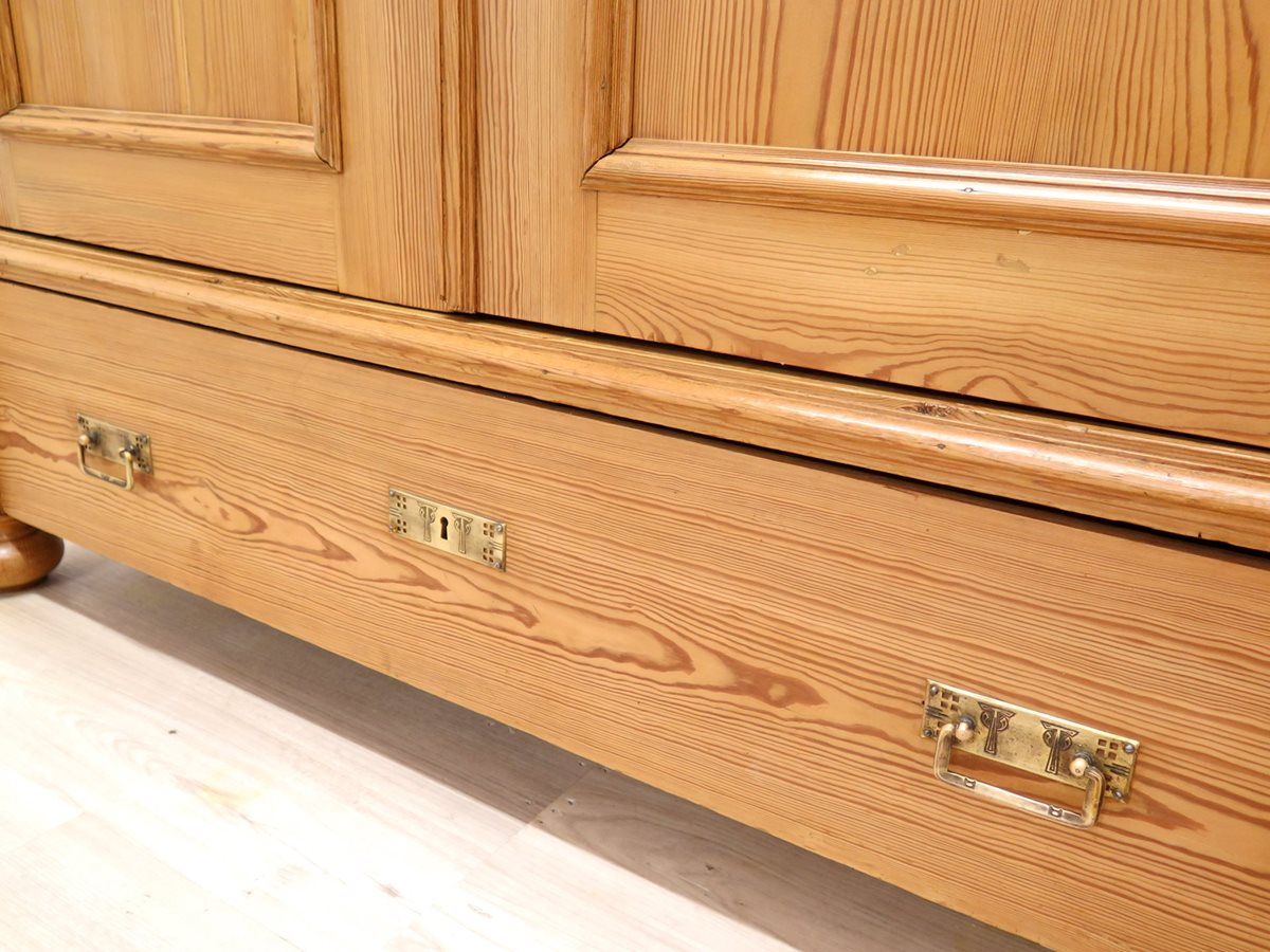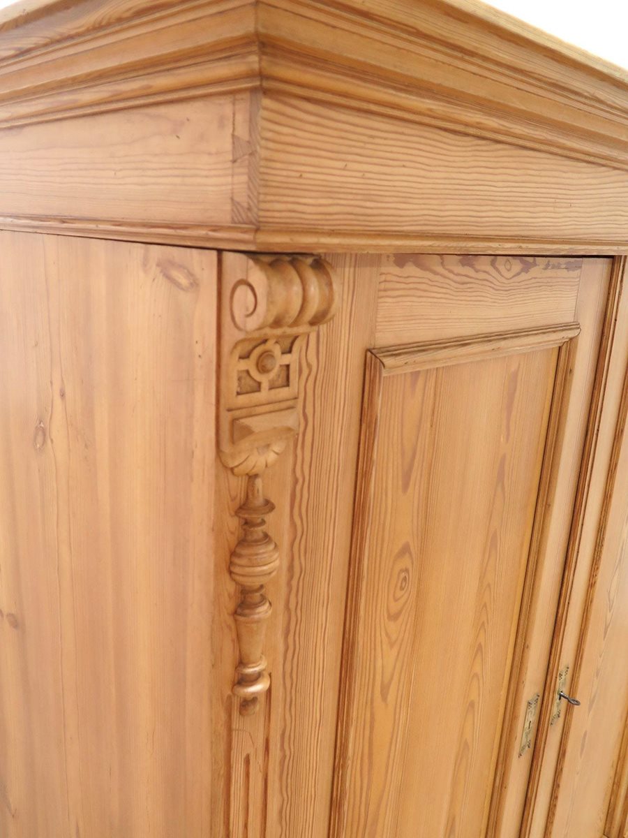 Krásná starožitná šatní skříň ze smrkového masivu po odborné renovaci. Nádherný kousek ve velmi zachovalém stavu. Stabilní a pevná konstrukce. Skříň je rozebíratelná.