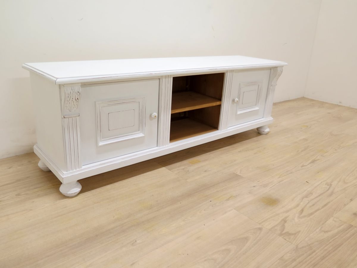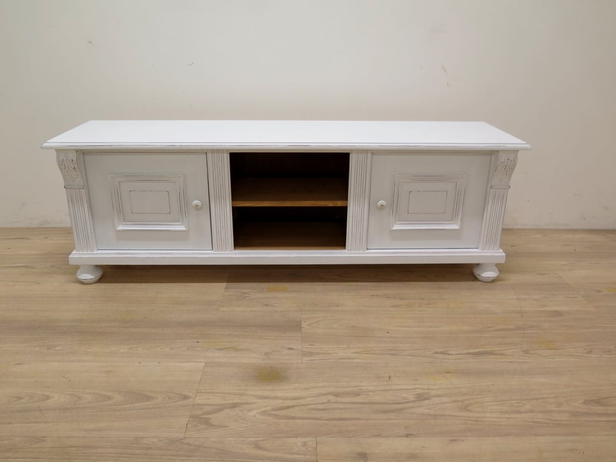 TV komoda ze smrkového masivu. Styl povrchu "Shabby Chic".